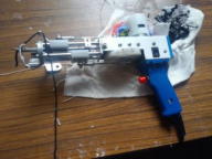 粗い布に タフティングガンで 毛糸を打ち込んで