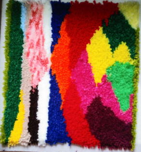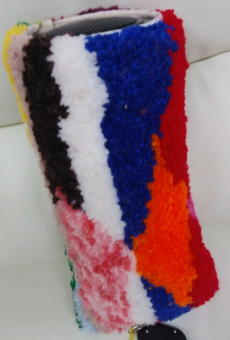 抱っこして音楽を流すと 小さな音量でも体に感じる音の振動が半端なく 耳の聞こえない方でが 始めて音を感じたと涙を流されたのが印象的で エンサウンドさんの許可を得て 制作していました。 そこで かわいらしいラグを探していましたが、なかなかなく、タフティングと出会って自分で好きなラグを作り 抱っこスピーカーを作ることが出来ました。