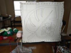 モンステラにハイビスカス 制作風景